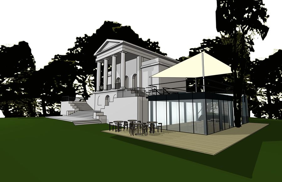 Auftraggeber: Shiatsu Kreis Eisenstadt (SKE); das Hauptgeschoss sollte ein Shiatsuzentrum beinhalten, das Sockelgeschoss ein Cafe; das Cafe war Thema der Aufgabenstellung; das Anbieten eines Raumes mit Tageslicht und Ausblick war das Ziel, als Ergänzung zum kaum belichteten Sockelgeschoss. die Rundumverglasung des Raumes sollte öffenbar sein, der Innenraum wird in der warmen Jahreszeit zum Aussenraum. die textile Überdachung der Dachterrasse kann neben dem historischen Gebäude Zeichen des SKE sein.