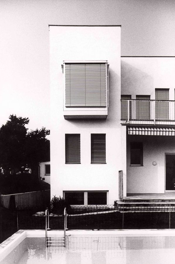Wohnhaus Bi, Eisenstadt, 1991; mit Gudrun Kaitna-Engel; Ein Wohnhaus an sanftem Südhang; Raumabfolge folgt Hanglage – Loos’scher Raumplan; Planungsbeginn: 1989; Fertigstellung: 1991; Tragwerksplanung; Gmeiner- Haferl Bauingenieure;